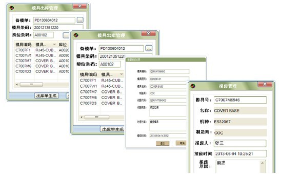 ○实现了快速的备模、出库、入库,及时掌握模具的去向,对于使用历史作详细的记录。